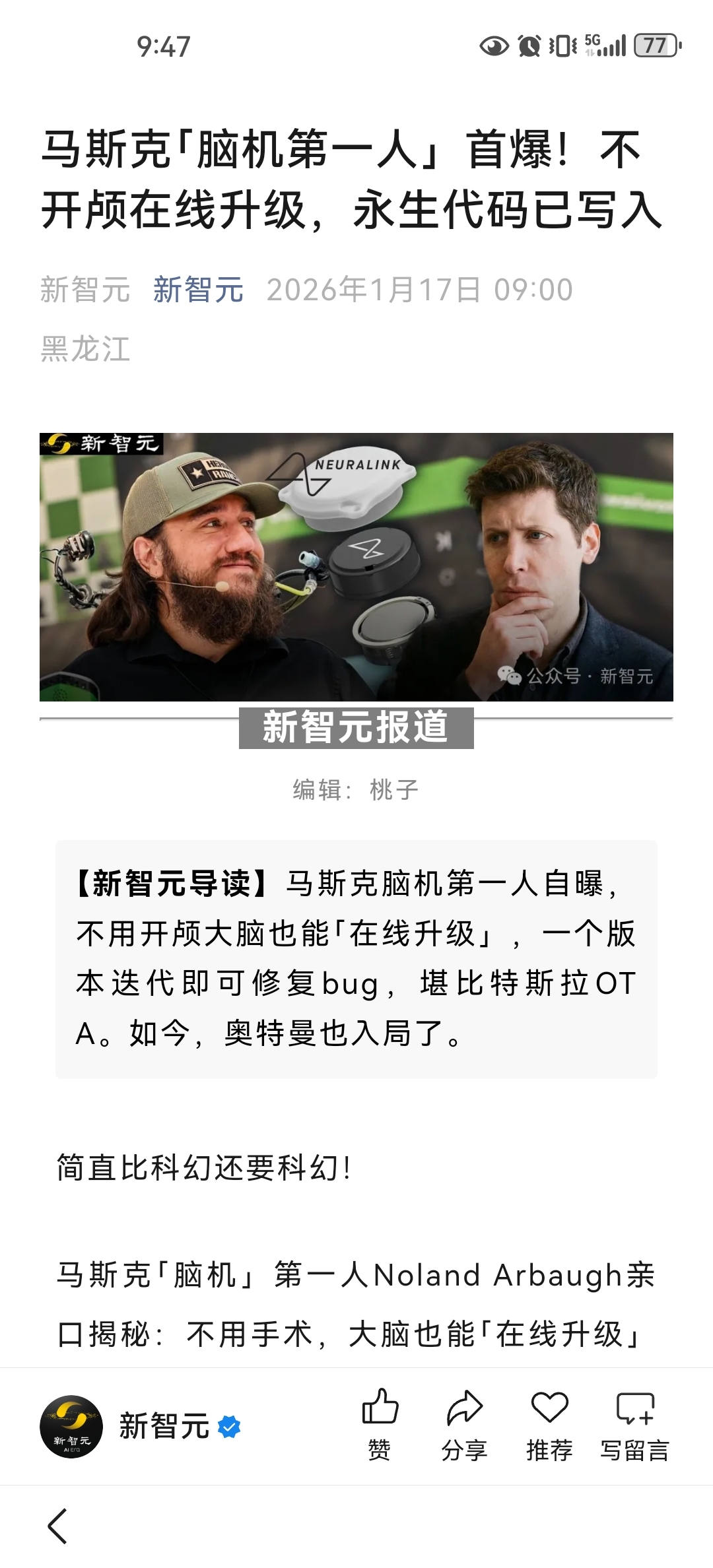 马斯克确实牛逼!脑机第一人说话了,永生代码已写入,在线升级!