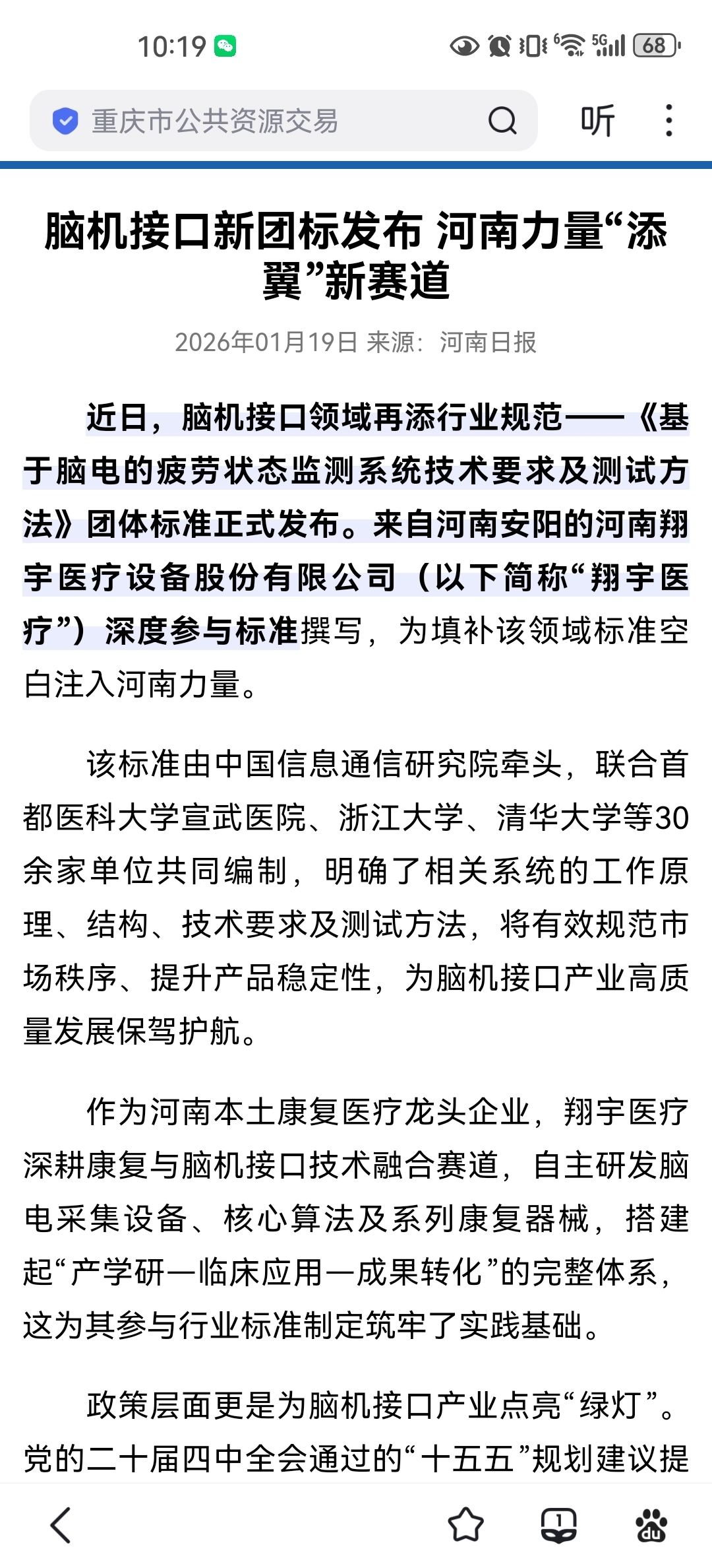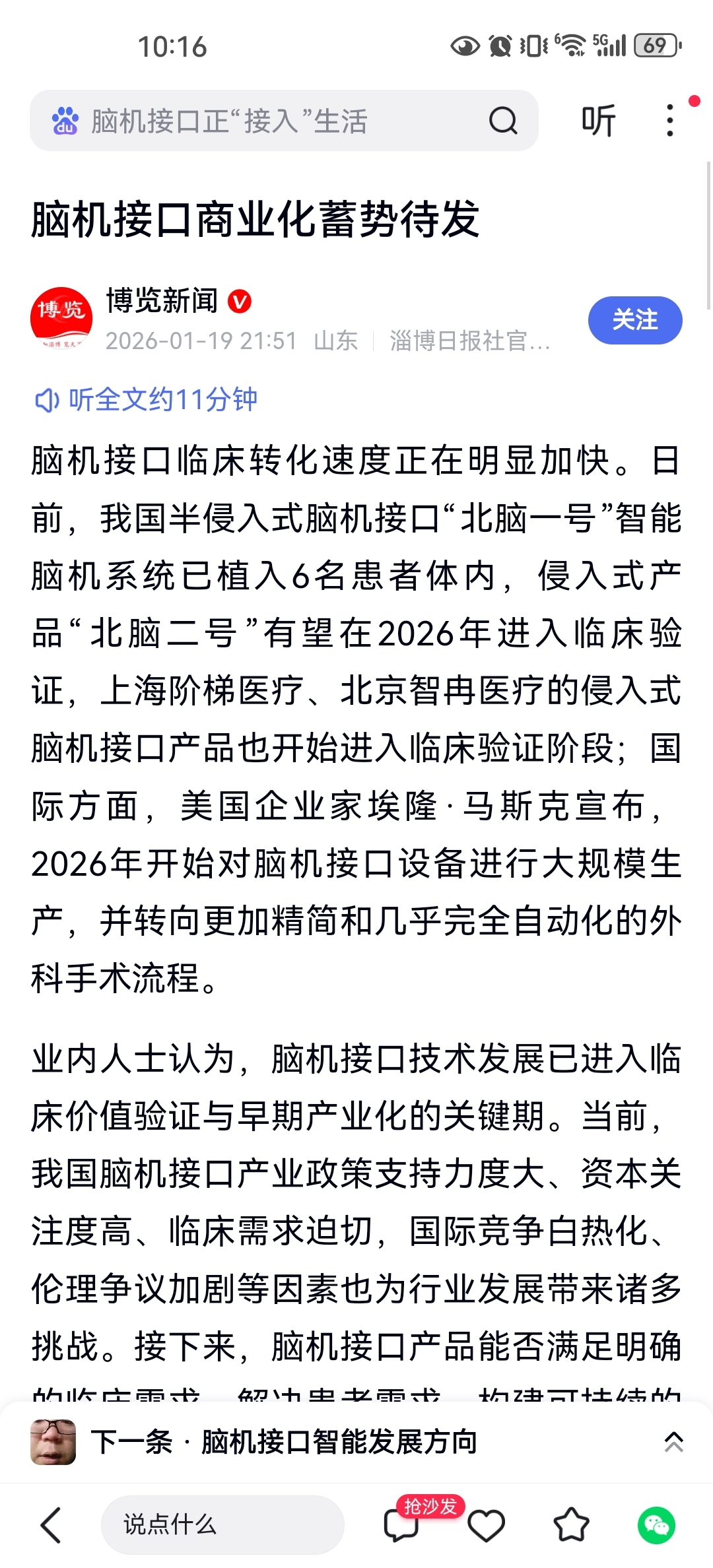 $三博脑科(SZ301293)$ $翔宇医疗(SH688626)$ $创新医疗(SZ002173)$ 脑机接口的革新在路上,越来越近,造福人类的技术,永生题材!今日新闻联播,各地的抢赛道,新质生产力,相信会又不断的利好慢慢放出来,北脑二号正在启动中!