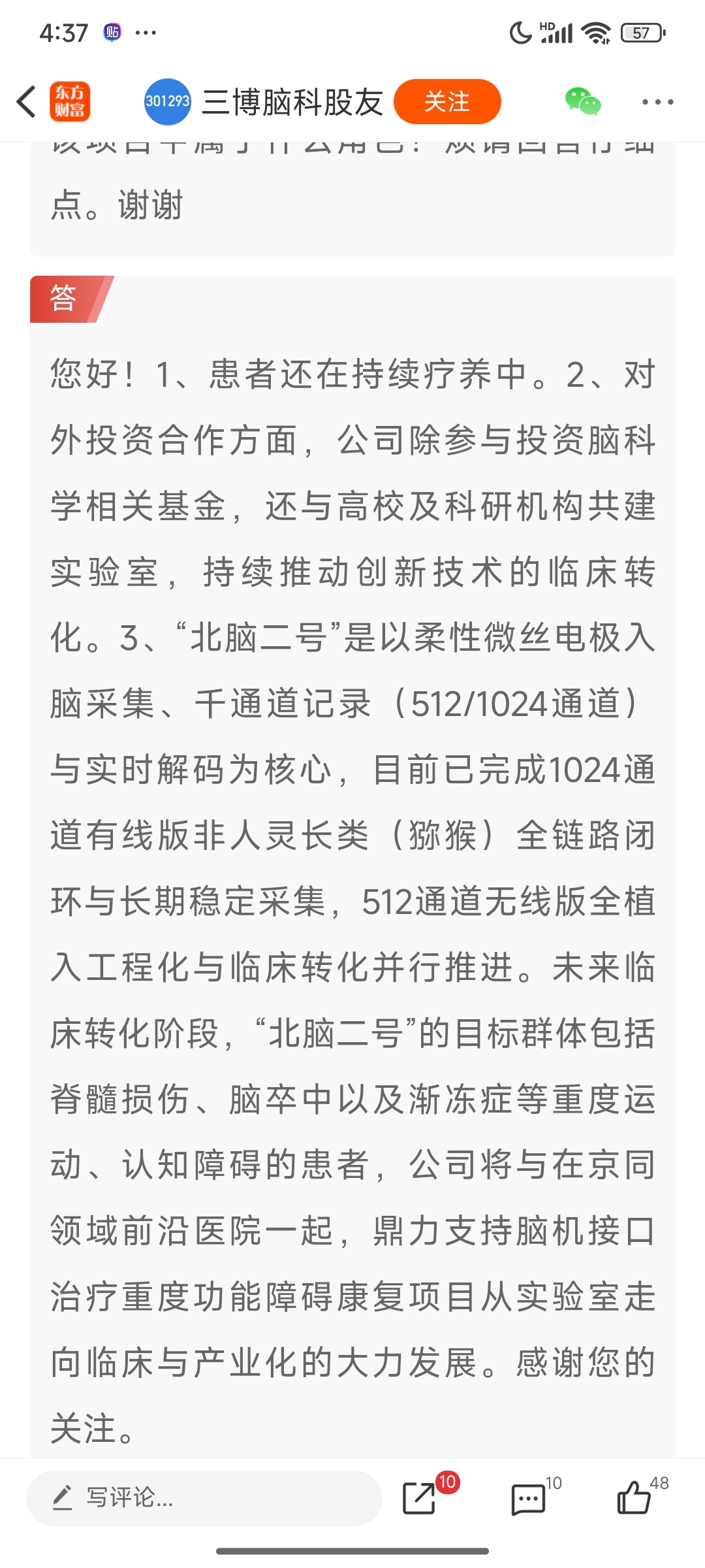 产品是耗材,脑机接入是工程。理解一下脑机精准医疗联合研究中心吧。首例独立完成的脑
