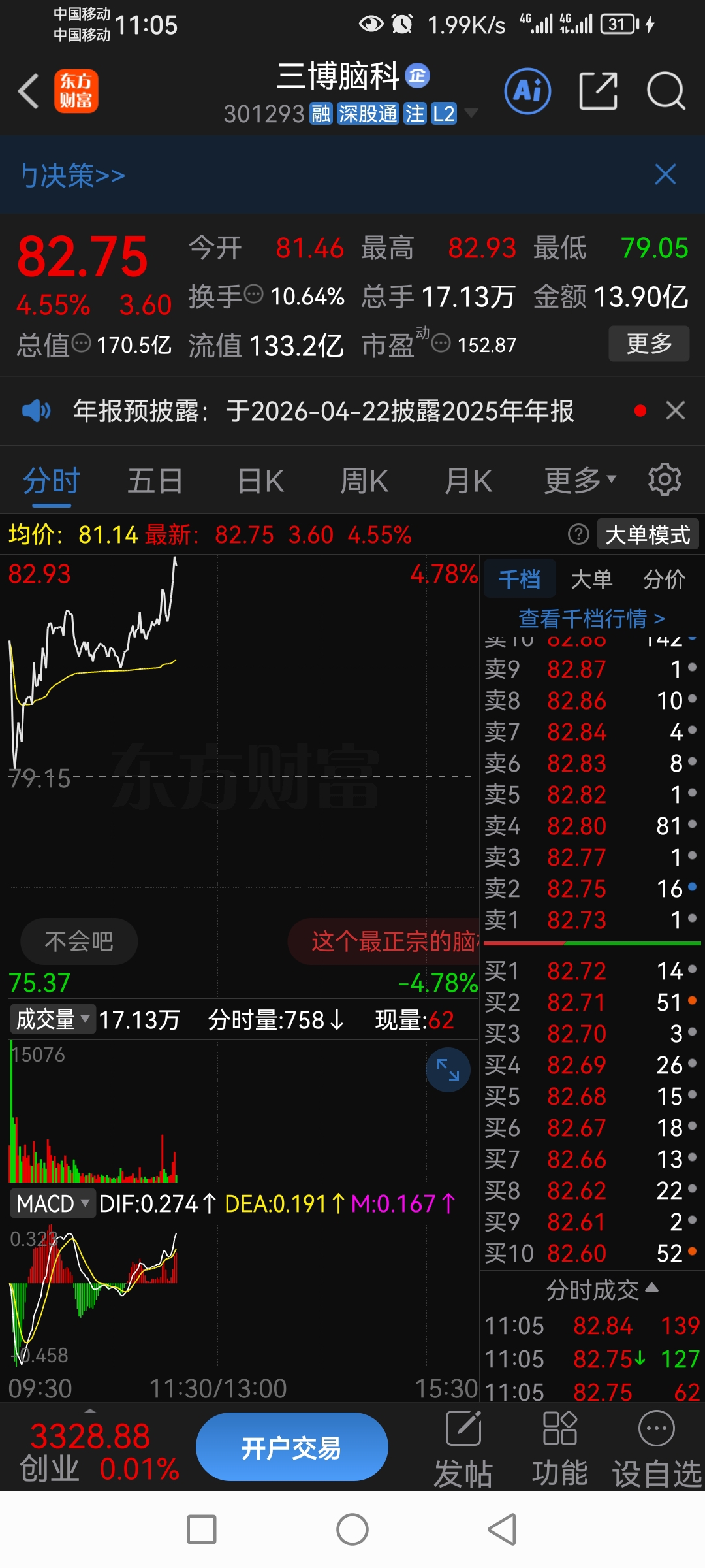 $三博脑科(SZ301293)$ 清仓出局亏了4个点祝留下的发财