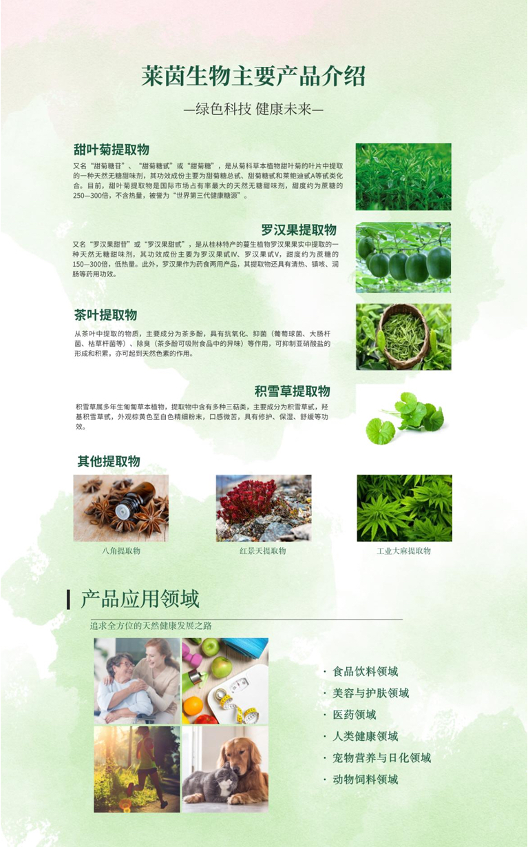 莱茵生物主要从事植物提取物生产经营业务,主要产品是罗汉果提取物、甜叶菊提取物等天然植物提取物产品以及天然中草药提取物产品。从八角中提取制造物-莽草酸,该产品是生产“达菲”(奥司他韦)的原料,达菲是重要的抗病毒药物之一。