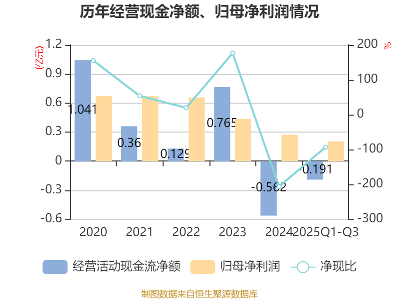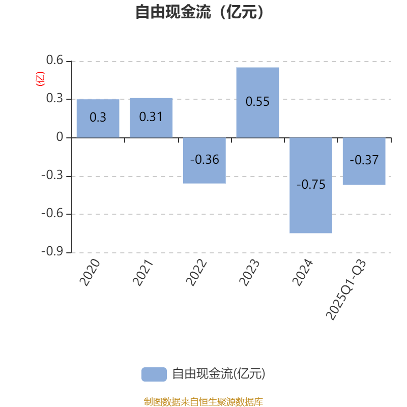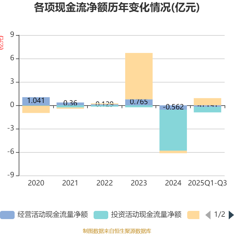 2025年前三季度,公司经营活动现金流净额为-1911.75万元,同比增加4470.59万元;筹资活动现金流净额9203.53万元,同比增加1.29亿元;投资活动现金流净额-7193.98万元,上年同期为-3689.34万元。
