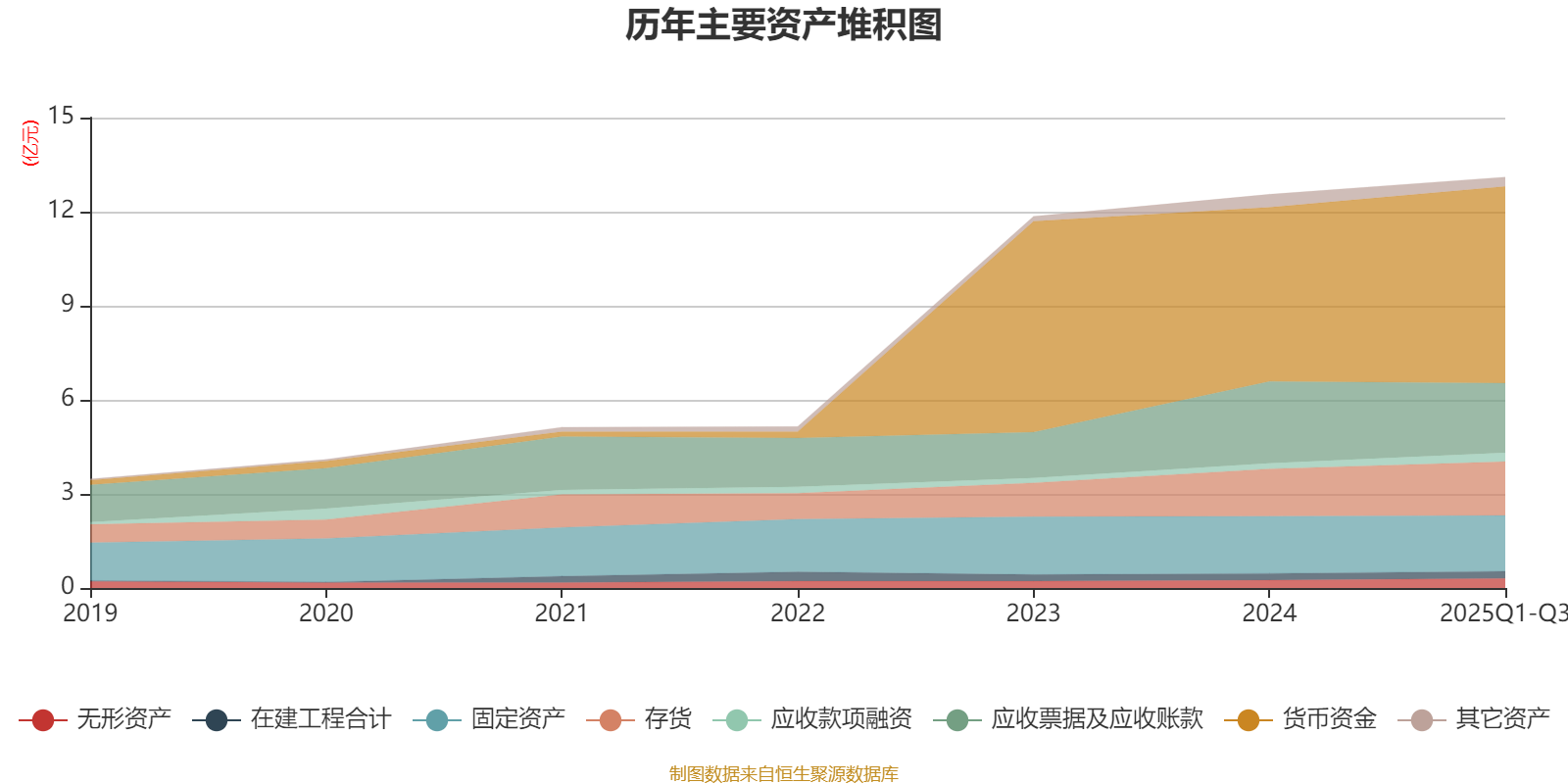 资产重大变化方面,截至2025年三季度末,公司应收票据及应收账款较上年末减少14.72%,占公司总资产比重下降3.8个百分点;货币资金较上年末增加12.92%,占公司总资产比重上升3.61个百分点;交易性金融资产合计较上年末减少69.36%,占公司总资产比重下降1.13个百分点;存货较上年末增加13.81%,占公司总资产比重上升1.08个百分点。