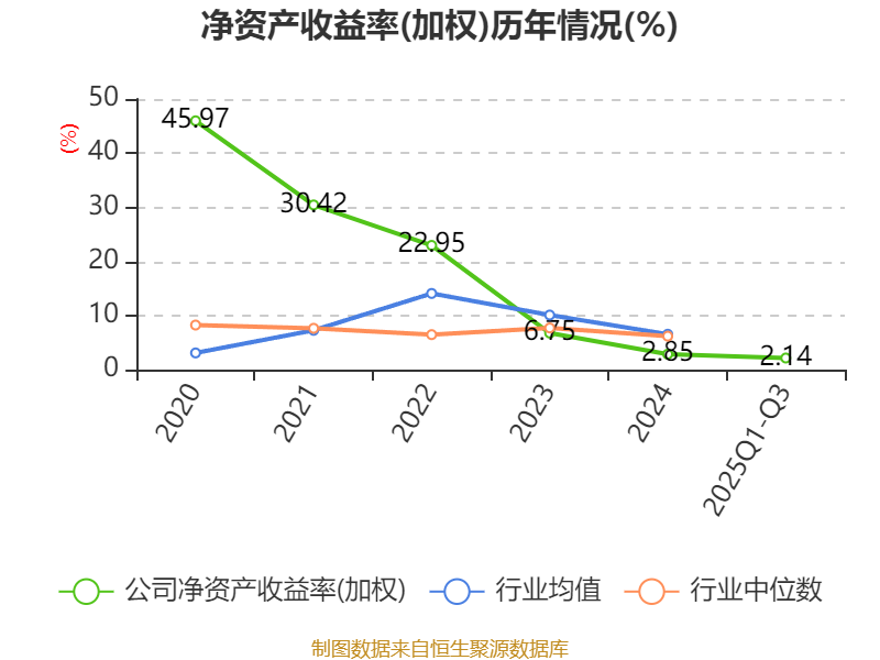 盈利能力方面, 2025年前三季度公司加权平均净资产收益率为2.14%,同比下降0.65个百分点。公司2025年前三季度投入资本回报率为0.91%,较上年同期下降0.66个百分点。