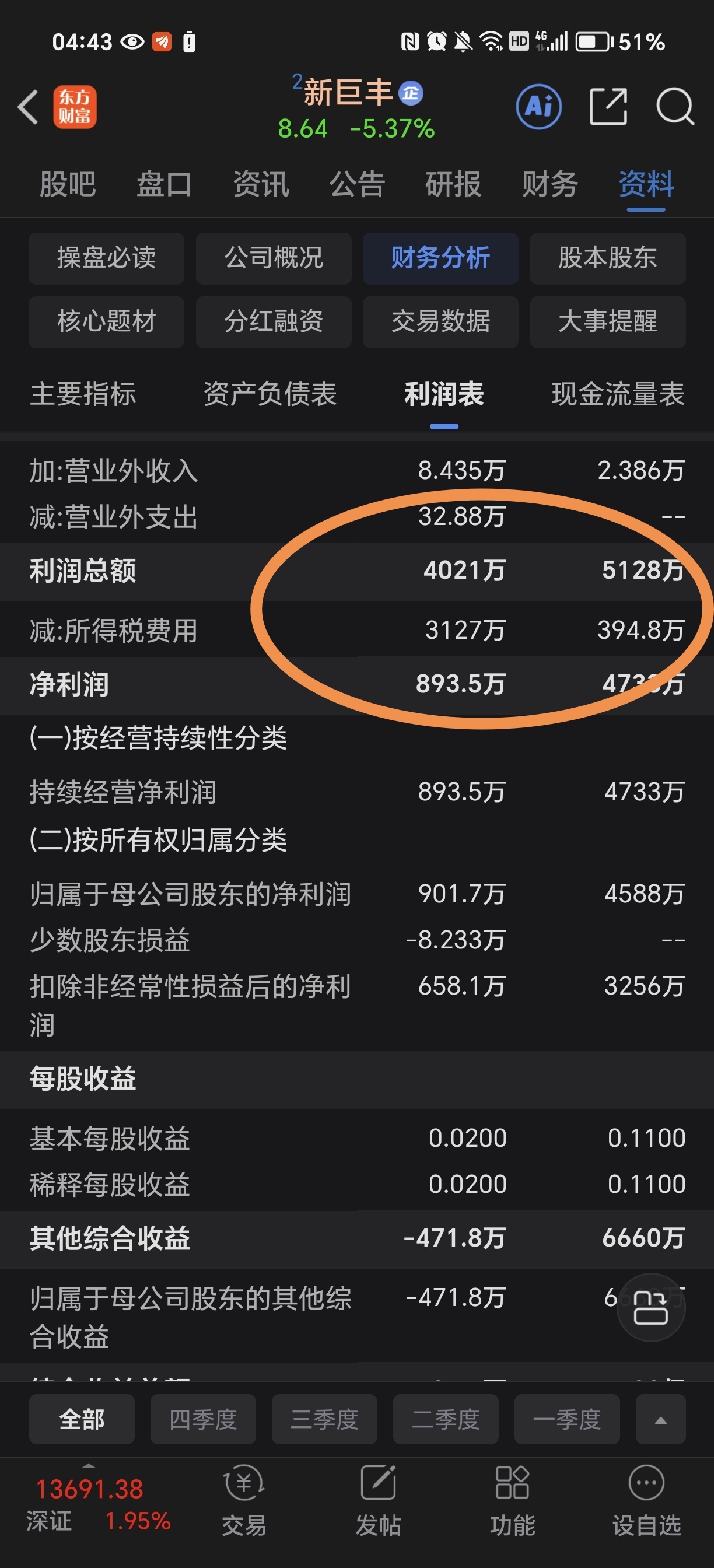 $新巨丰(SZ301296)$ 为什么新巨丰第三季度利润总额4021万,所得税是3127多万?怎么理解?