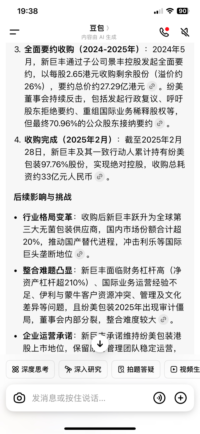 $新巨丰(SZ301296)$ 新巨丰,做出了历史上最关键的收购,未来将有机会和利乐巨头掰手腕