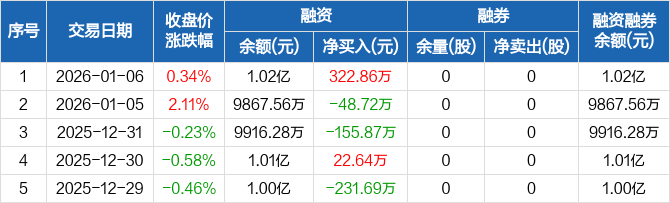 新巨丰:融资净买入322.86万元,融资余额1.02亿元(01-06)