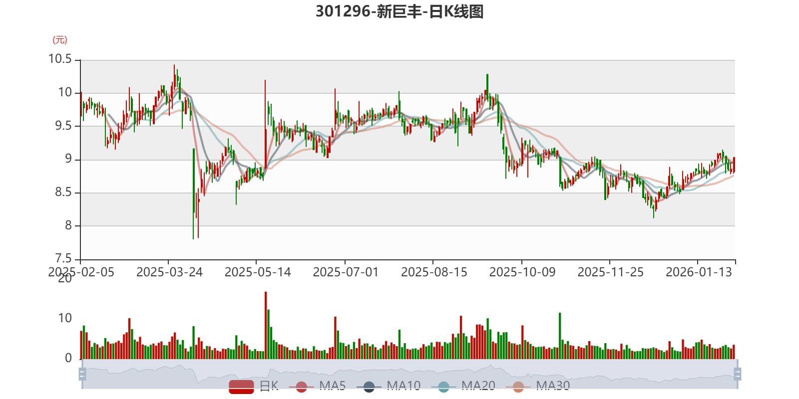中证智能财讯新巨丰(301296)1月30日晚间披露2025年度业绩预告,预计2025年归母净利润5100万元至6800万元,同比下降77.07%-82.8%;扣非净利润预计3500万元-5200万元,同比下降77.76%-85.03%。以1月30日收盘价计算,新巨丰目前市盈率(TTM)约为55.83倍-74.44倍,市净率(LF)约1.4倍,市销率(TTM)约1.52倍。
