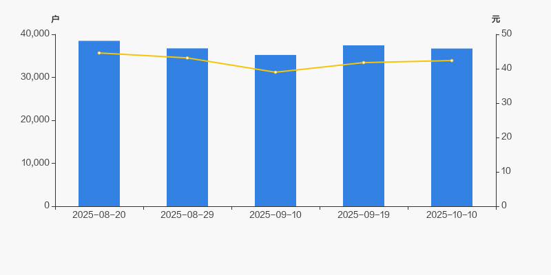 2025年8月20日至今,公司股东户数有所下降,区间跌幅为4.64%。2025年8月20日至2025年10月10日区间股价下降4.96%。