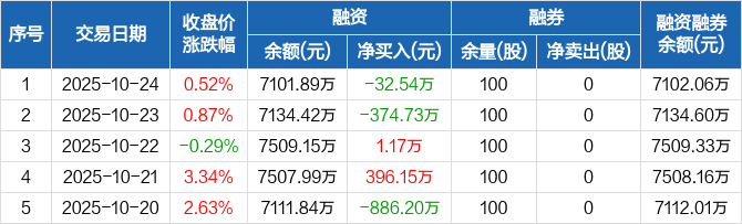 东利机械:融资净偿还32.54万元,融资余额7101.89万元(10-24)