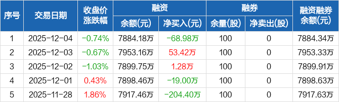东利机械:融资净偿还68.98万元,融资余额7884.18万元(12-04)