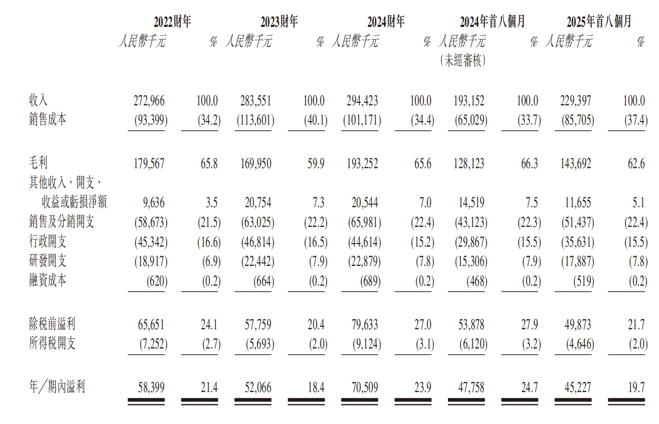 毛利率方面,2022-2024年及2025年前八个月的毛利率分别为65.8%、59.9%、65.6%与62.6%,呈现“V型”波动。核心业务的盈利能力方面,资讯服务同期的毛利率依次为68.3%、63.3%、74.7%与71.7%,波动较大。公司在招股书中表示,“倘行业竞争加剧及员工成本增加,资讯服务板块的利润率可能进一步减少,这可能对我们的财务状况产生不利影响”。