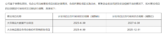 另外,记者注意到,其募投项目目前均处于未完工状态。原定“大宗商品大数据平台项目”和“大宗商品现货市场价格标杆系统研发项目”的计划项目达到可使用状态日期均为今年6月30日,但是目前已经延期至2027年6月30日、2025年12月31日。