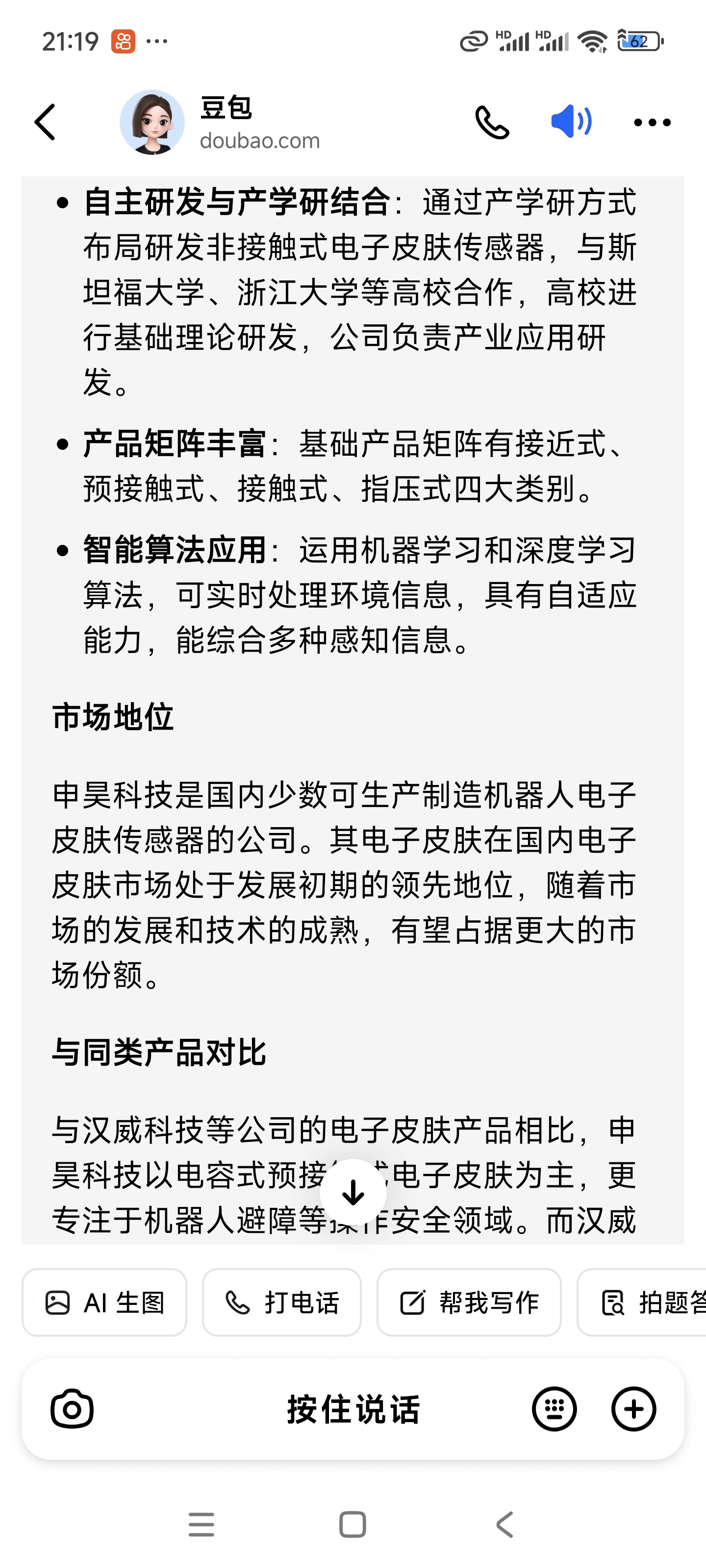 申昊科技竟然是国内为数不多拥有电子皮肤的公司之一,今天确尚未被主力未被挖是不是有