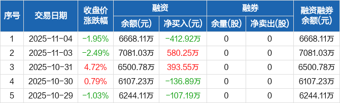 远翔新材:融资净偿还412.92万元,融资余额6668.11万元(11-04)