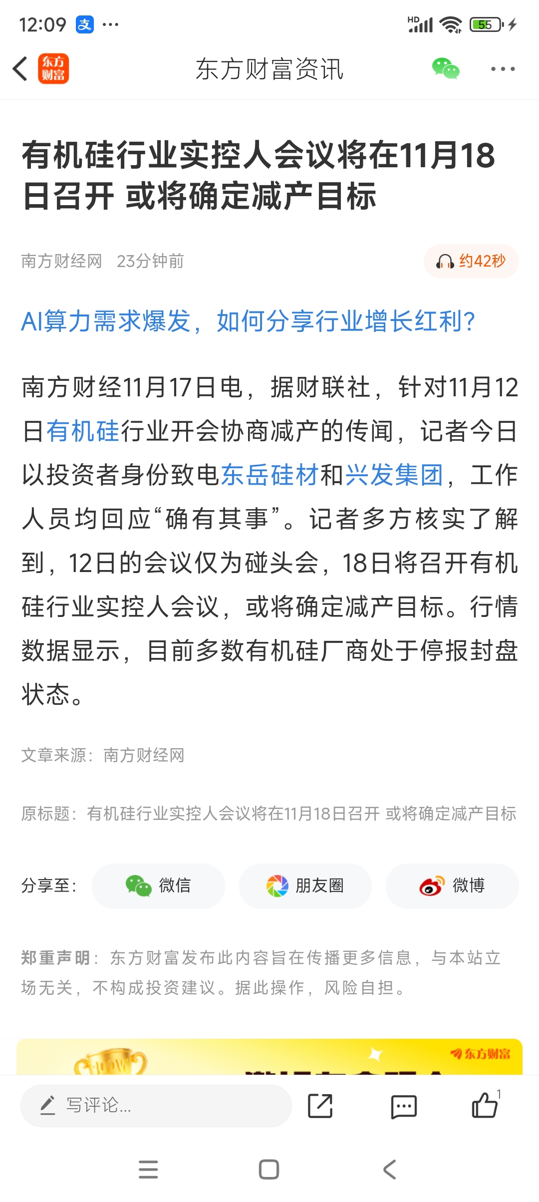 $远翔新材(SZ301300)$ 有机硅减产会议明天召开,大家等着吃20cm