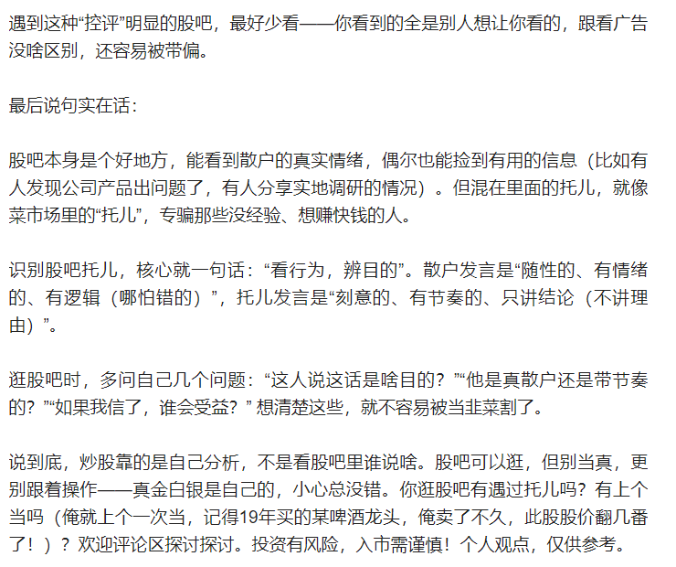郑重声明:用户在财富号/股吧/博客等社区发表的所有信息(包括但不限于文字、视频、音频、数据及图表)仅代表个人观点,与本网站立场无关,不对您构成任何投资建议,据此操作风险自担。请勿相信代客理财、免费荐股和炒股培训等宣传内容,远离非法证券活动。请勿添加发言用户的手机号码、公众号、微博、微信及QQ等信息,谨防上当受骗!