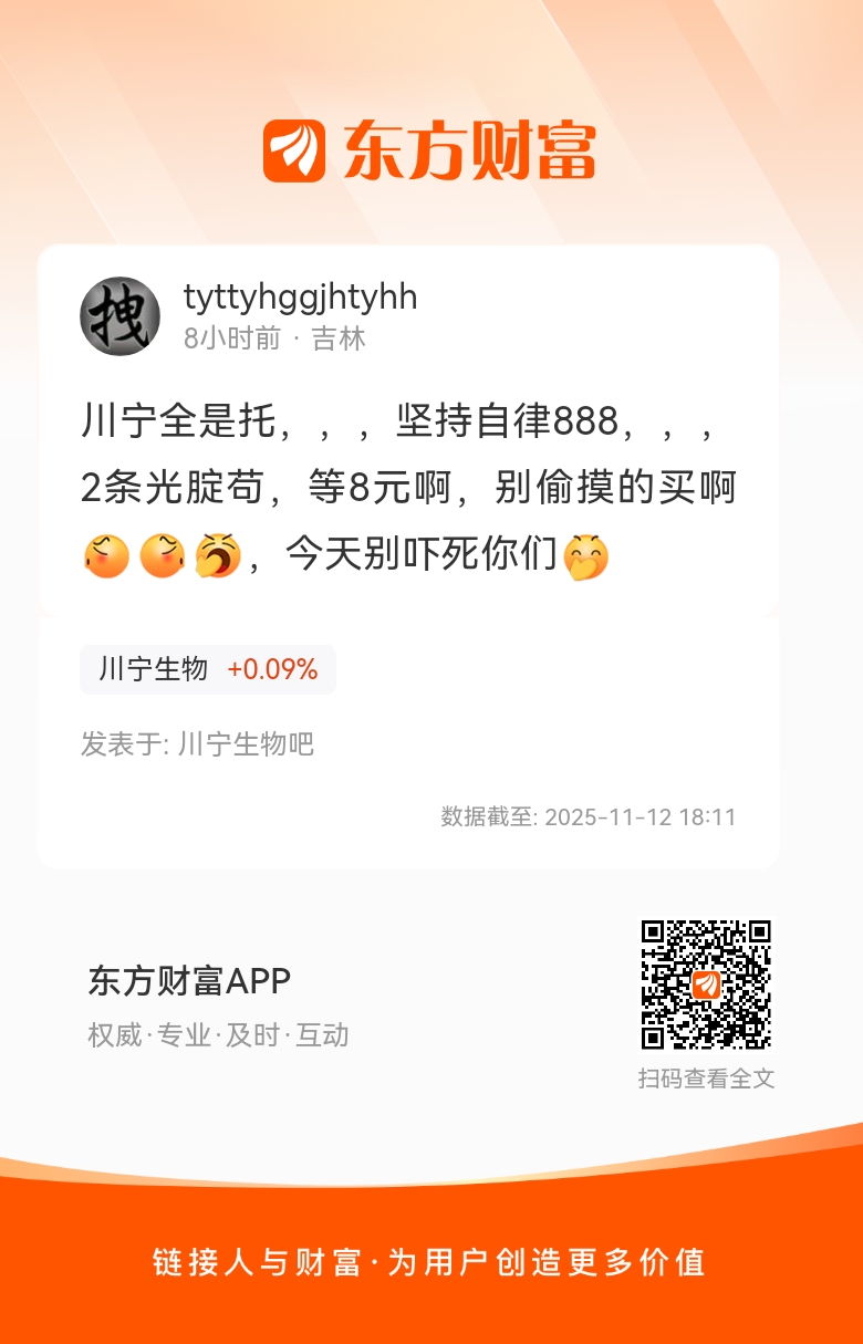温馨提示: 1.根据《证券法》规定,禁止编造、传播虚假信息或者误导性信息,扰乱证券市场;2.用户在本社区发表的所有资料、言论等仅代表个人观点,与本网站立场无关,不对您构成任何投资建议。用户应基于自己的独立判断,自行决定证券投资并承担相应风险。《东方财富社区管理规定》