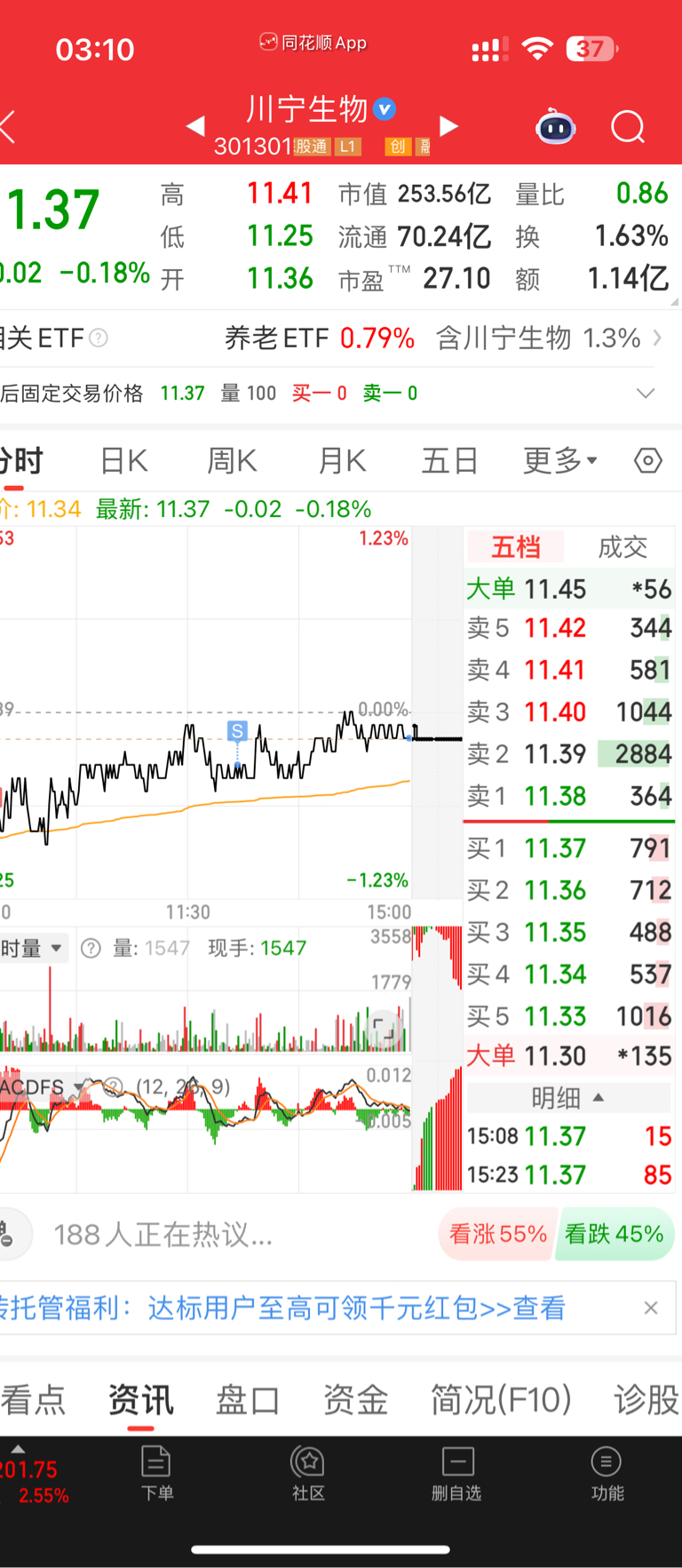 $川宁生物(SZ301301)$ 明天捡带血的筹码!