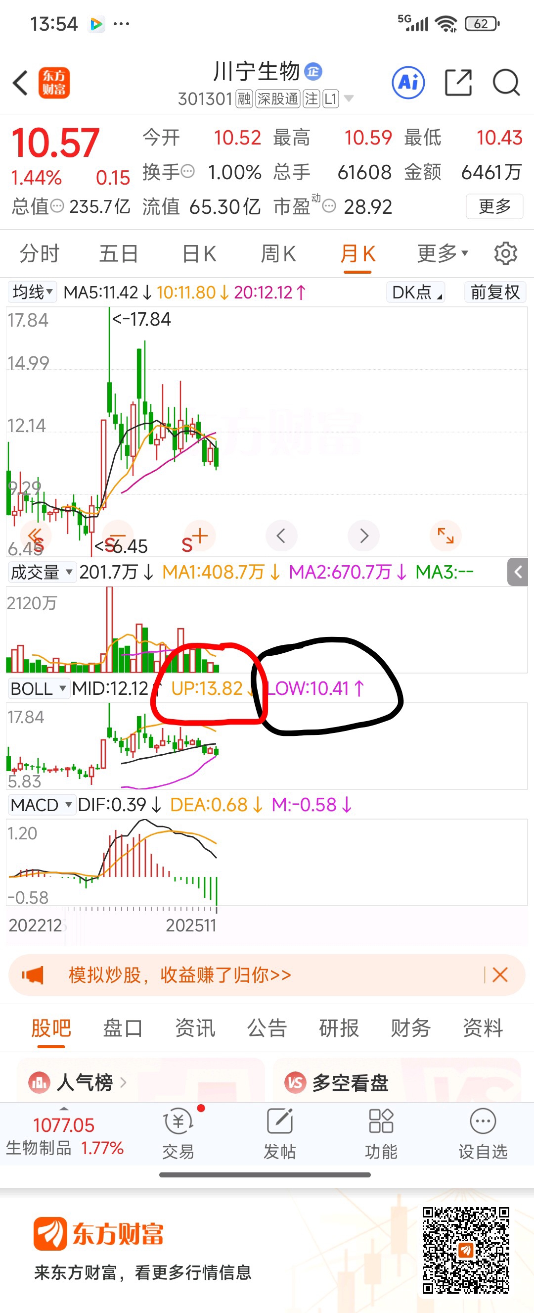 $川宁生物(SZ301301)$ 它不符合减持条件,别拿解禁说事。十五五规划里有合成生物政策。月线图布林线在上升通道中收口碰下轨线,月线级别能碰下轨线的次数可不多见,看多或看空仁者见仁智者见智。