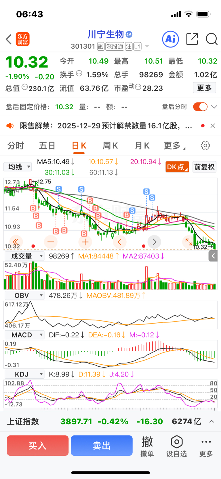 $川宁生物(SZ301301)$ 辛亏保本走了