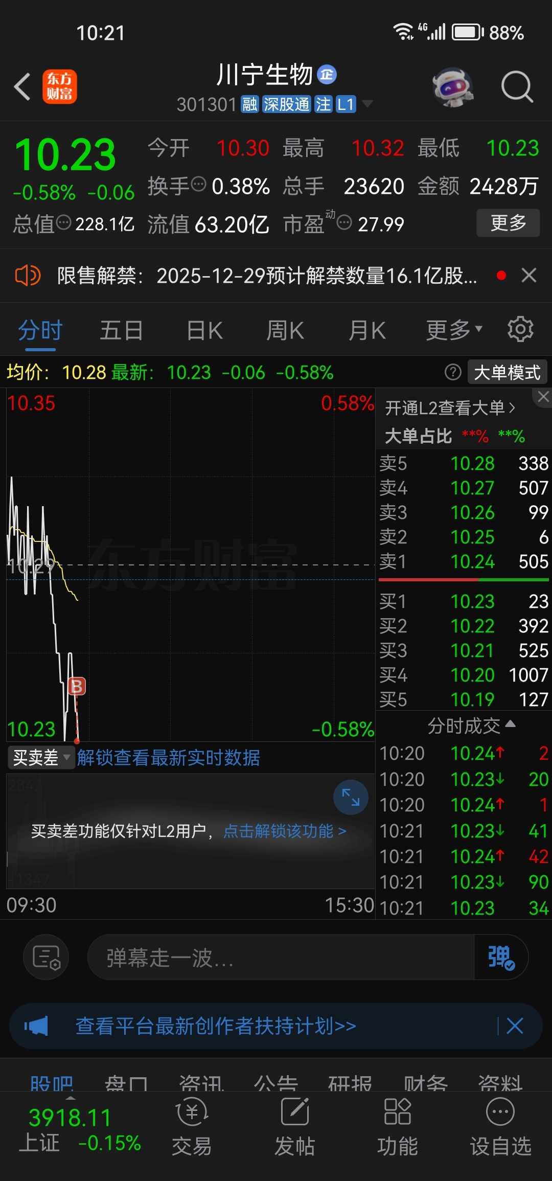 $川宁生物(SZ301301)$ 谢谢猪砸盘23买到在下砸中逐步买入