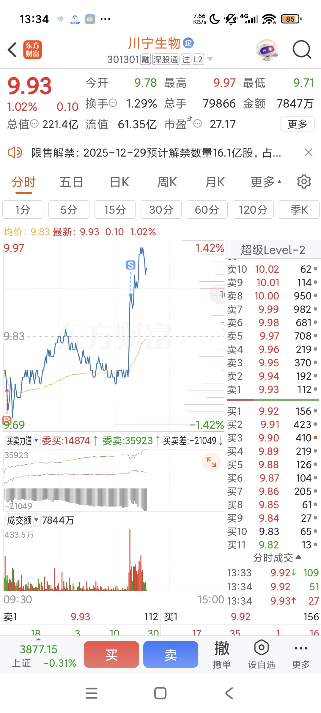 $川宁生物(SZ301301)$ 今天调出指数,尾盘竞价肯定是被动卖啊,现在拉什么,搞不懂了,不管了,一毛五差价吃到。挺好的,不贪心无所谓