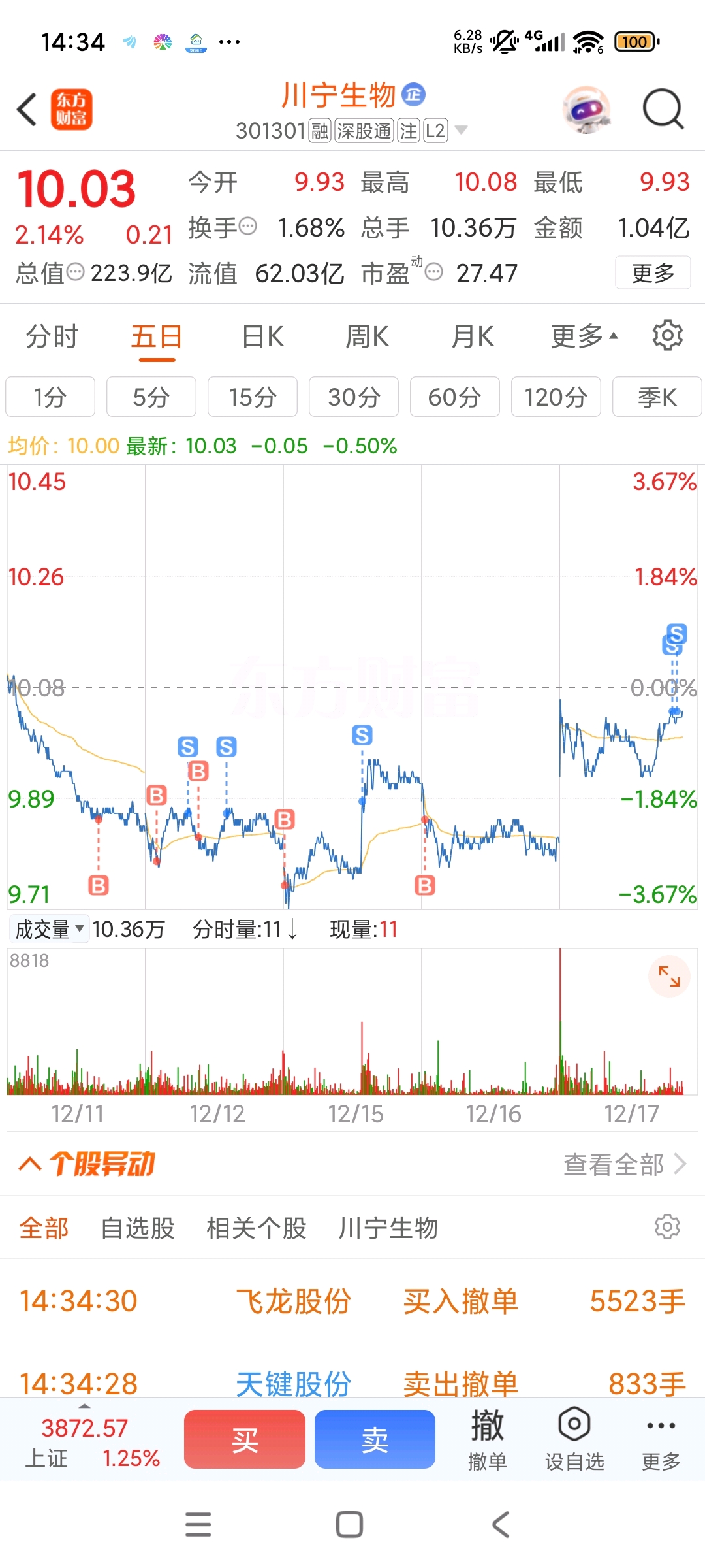 $川宁生物(SZ301301)$ 每天做T每天美滋滋,不贪心就有的赚,