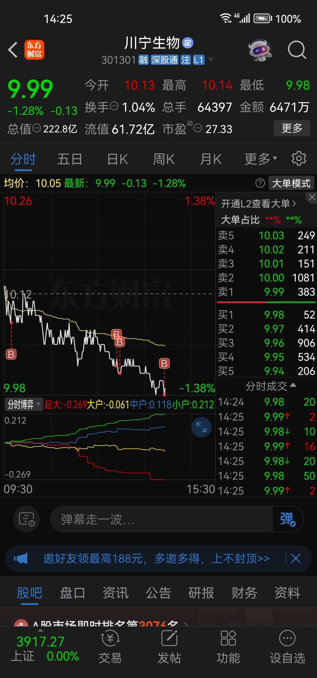 $川宁生物(SZ301301)$ 现在已经见到短中长最佳抄底价位,不出半年股价翻翻98成交继续加仓抄底中哈哈哈