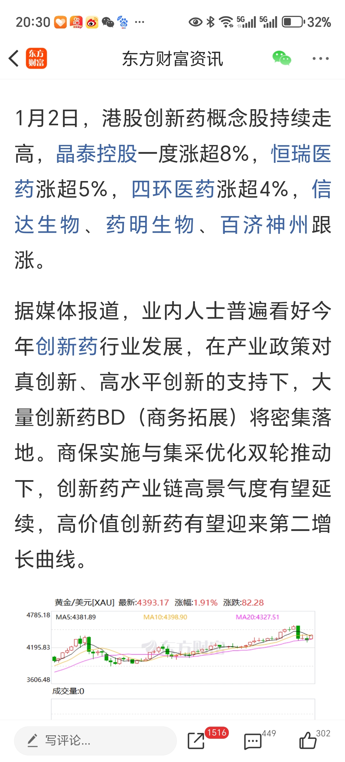 $川宁生物(SZ301301)$ 港股今天生物制造创新药领涨新年开门红