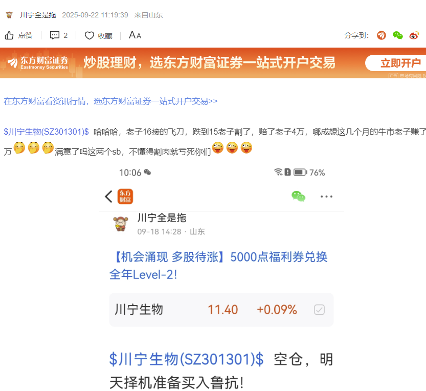 一个投资失败者的唱空,是他无能、无奈、无聊发出的无力的心声,川宁生物葬送了他所有