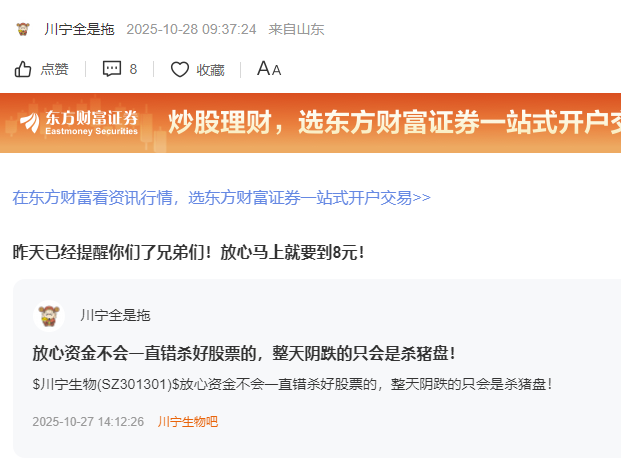 一个投资失败者的唱空,是他无能、无奈、无聊发出的无力的心声,川宁生物葬送了他所有的梦想,成了他这辈子久久不能释怀、挥之不去的梦魇,在川宁反弹上涨的路上,他消失得无影无踪了,安西吧,8元郎们
