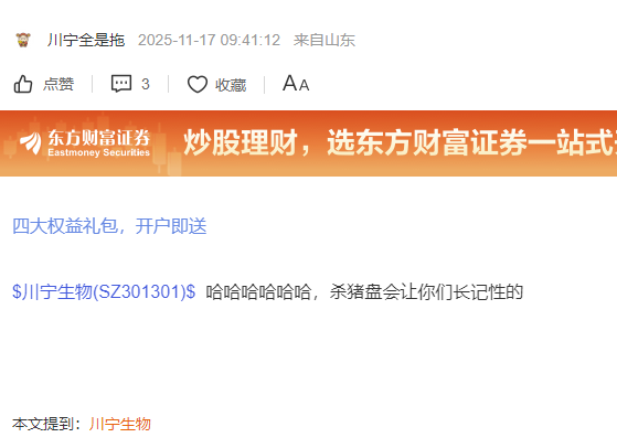 温馨提示: 1.根据《证券法》规定,禁止编造、传播虚假信息或者误导性信息,扰乱证券市场;2.用户在本社区发表的所有资料、言论等仅代表个人观点,与本网站立场无关,不对您构成任何投资建议。用户应基于自己的独立判断,自行决定证券投资并承担相应风险。《东方财富社区管理规定》