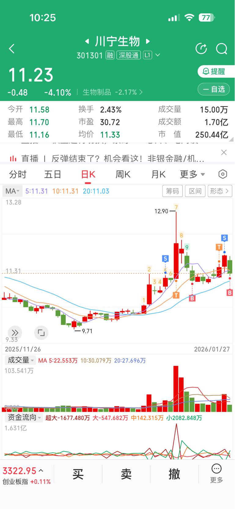 $川宁生物(SZ301301)$ 还好昨天卖了,今天又干回来了