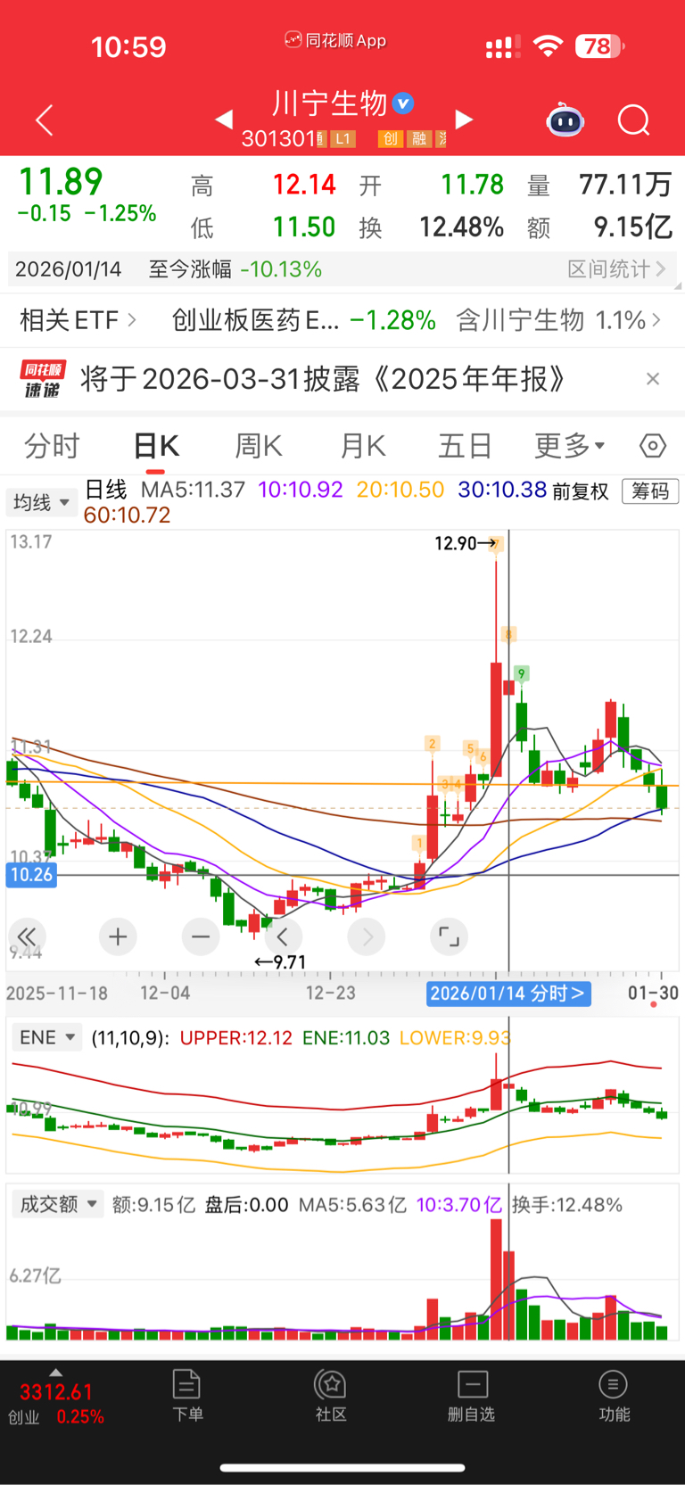 $川宁生物(SZ301301)$ 谁从12.9追的直接亏了15个点左右,典型的杀猪盘兄弟们!!认清现实!放弃幻想吧
