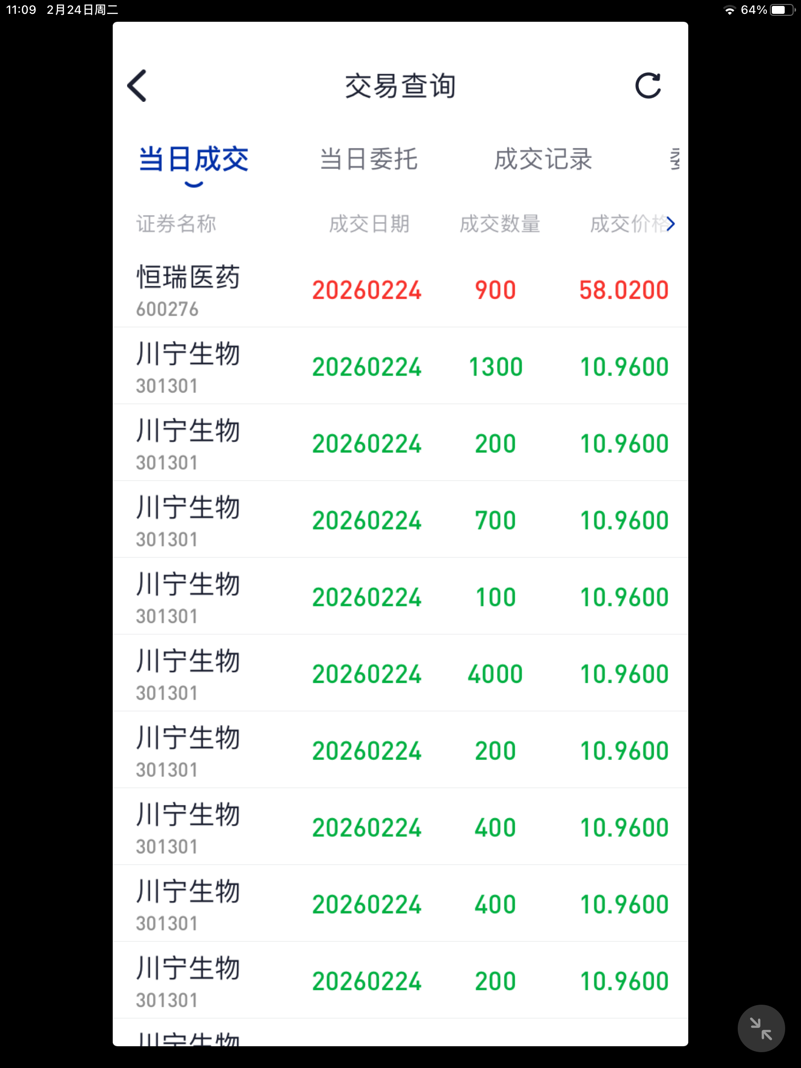 老牛上午收盘单,半仓了,,川宁坚决不碰了,科伦绿了,,,红不了,红少亏走了算了
