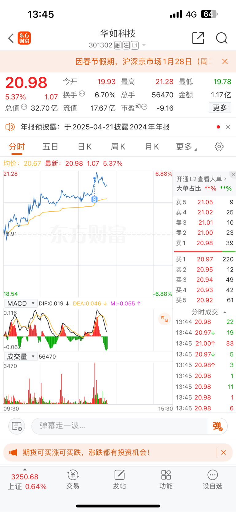 $华如科技(SZ301302)$ 冲高就抛一点,慢慢来