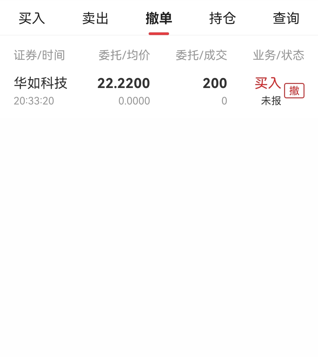 明天准备追高买200股华如科技,提前放22.22元价位买,这次估计会成功的。