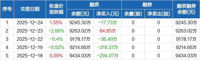 华如科技:融资净偿还17.73万元,融资余额9245.3万元(12-24)