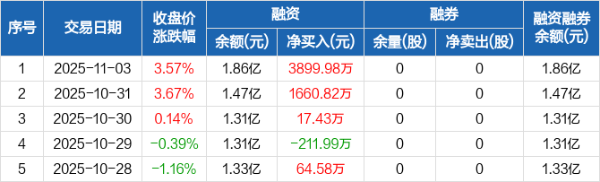 西测测试:连续3日融资净买入累计5578.23万元(11-03)
