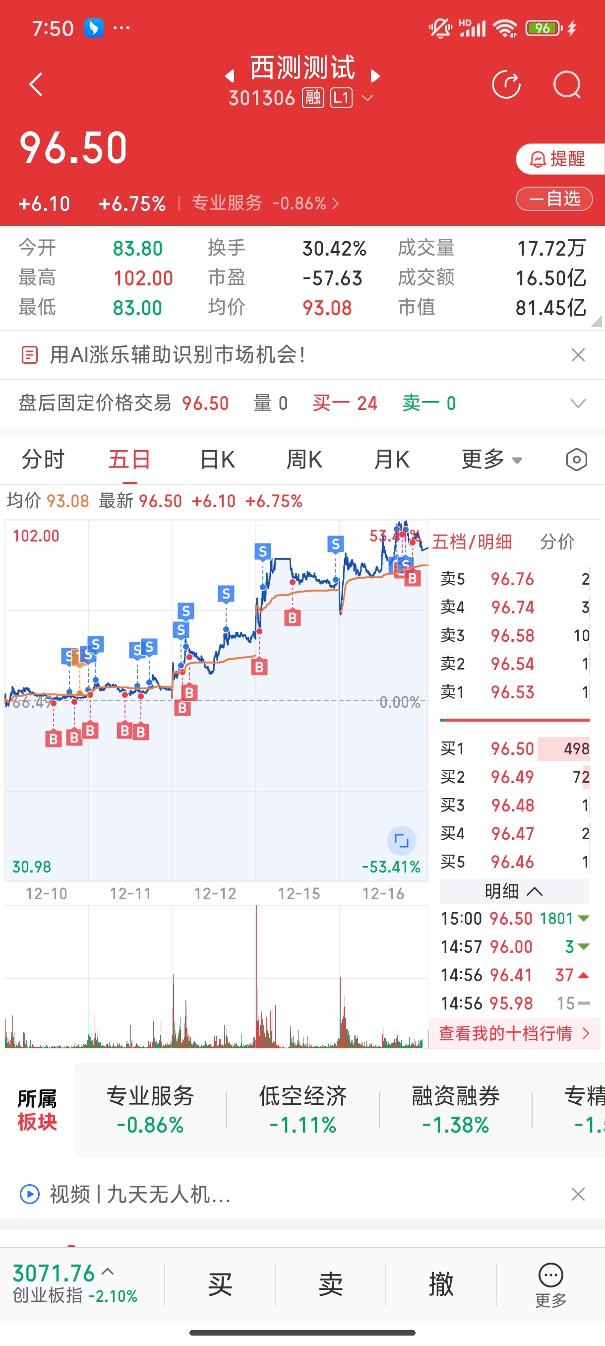 量价齐升,继续高抛低吸,今日继续做T西测和航天工程,买入航天信息和南侨食品,割肉