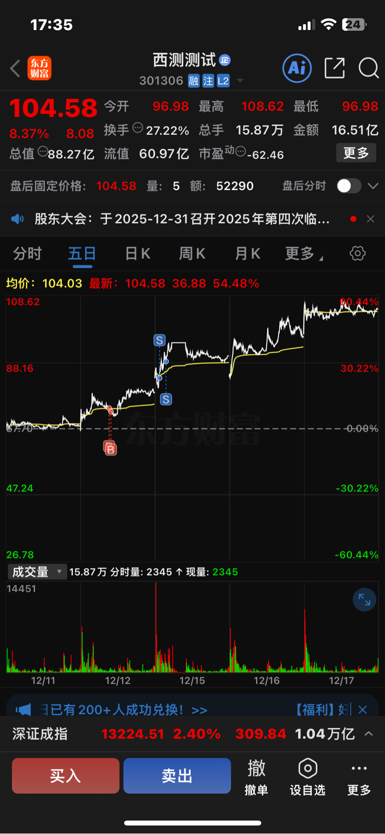 $西测测试(SZ301306)$ 卖飞了,难过3秒钟吧