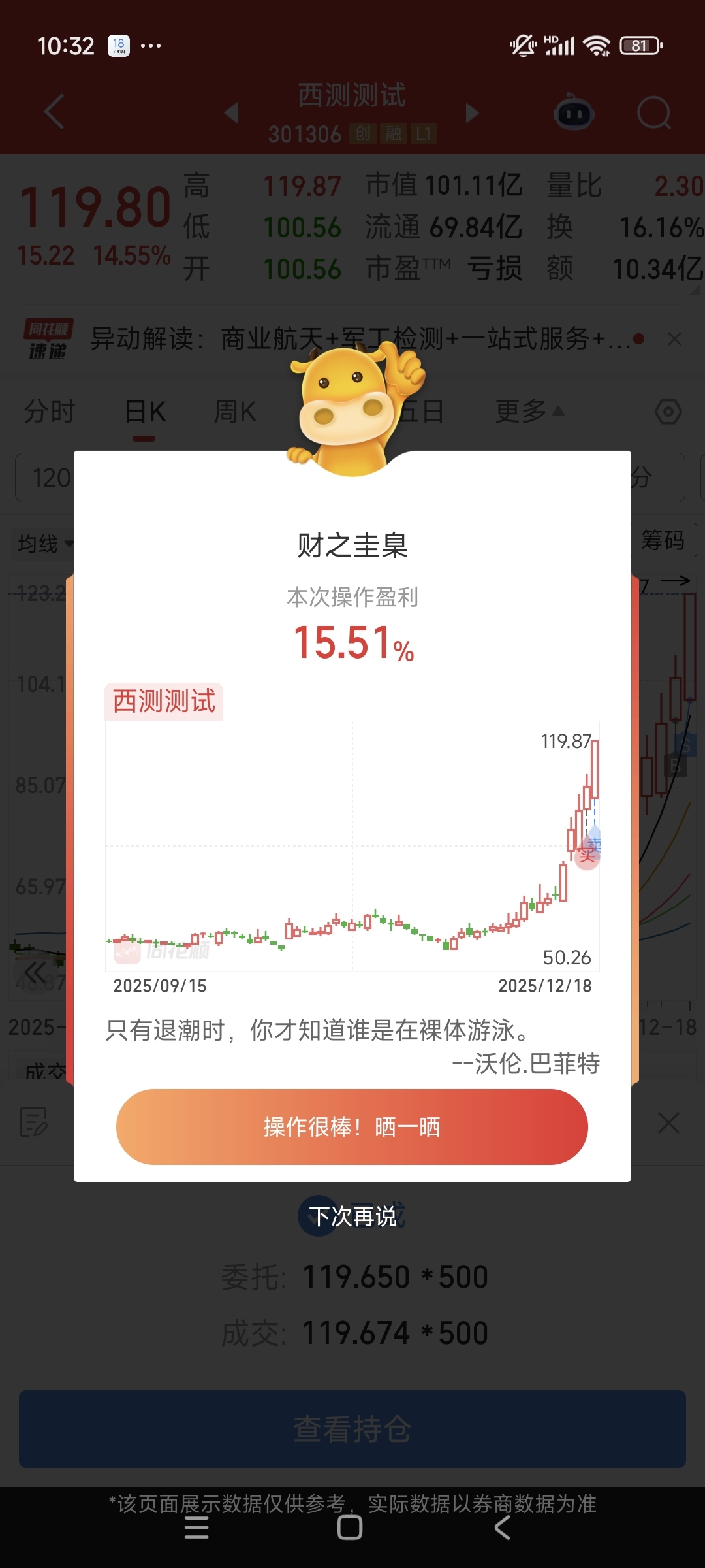 赚钱了,什么时候跑都是对的,谢谢庄家,留下的兄弟继续发财