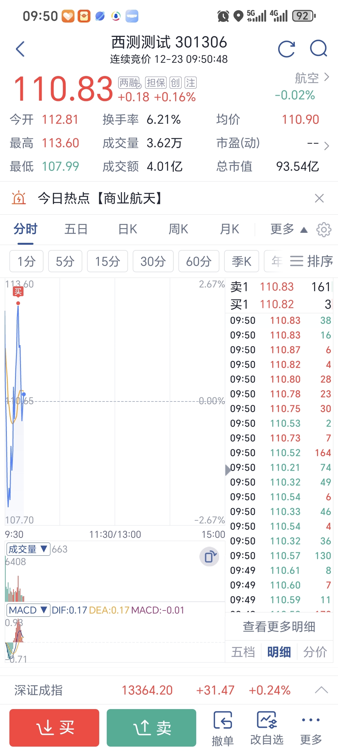 $西测测试(SZ301306)$ 不好意思,道友们,我把股价带崩了,我买到了最高点