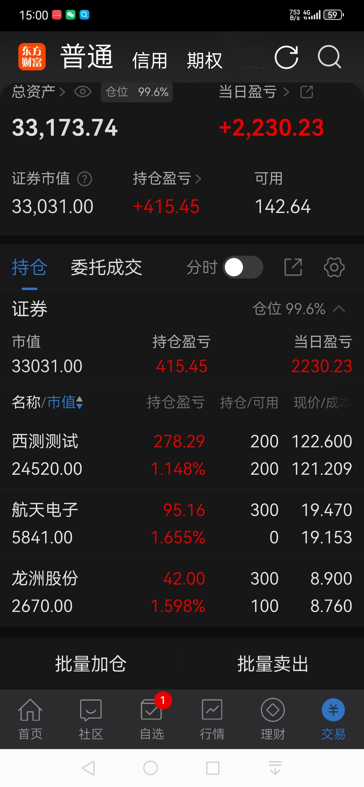 今日赢利:+2230元