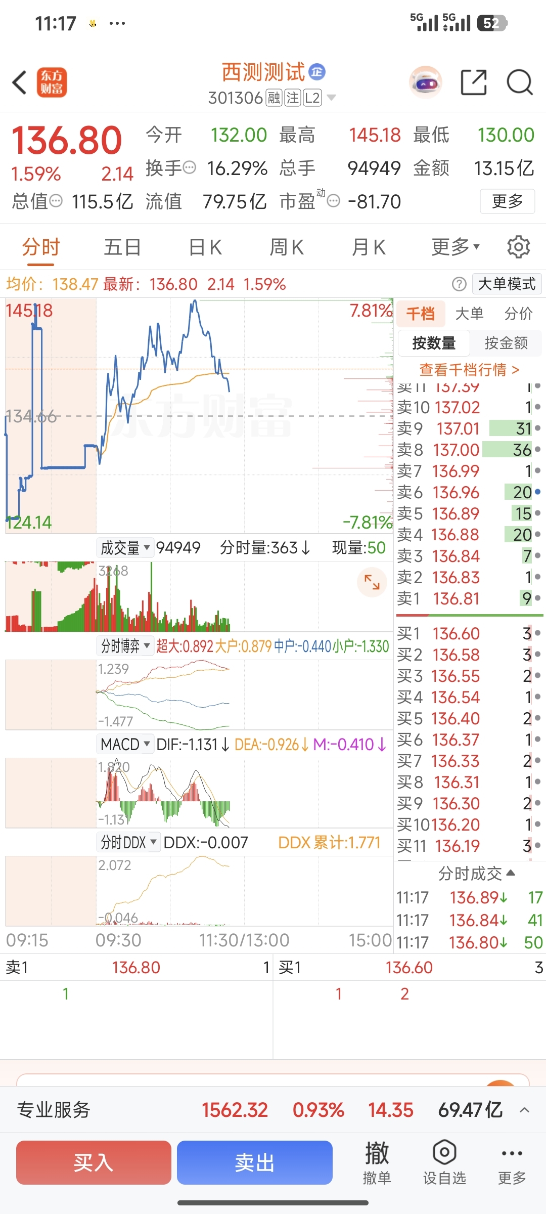 $西测测试(SZ301306)$ 吃个饭的功夫,由盈利5个多点,到亏损,服了