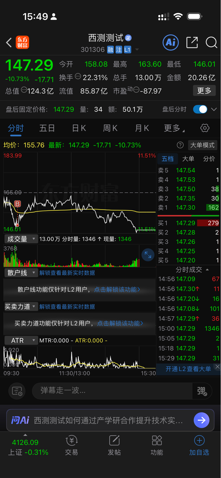 $西测测试(SZ301306)$ 中午还说早上买少了,
