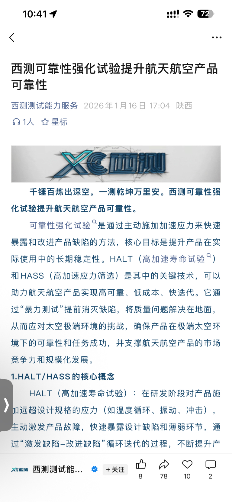 西测可靠性强化试验提升航天航空产品可靠性,避免盲目发射连续失利,目前最重要的加强进行可靠性测试
