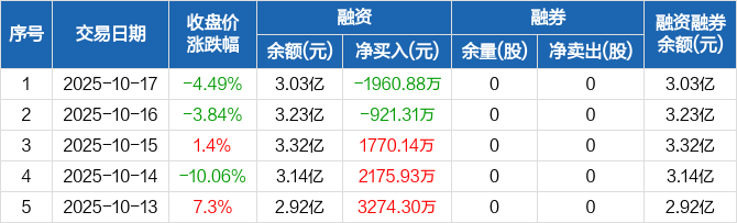 美利信:融资净偿还1960.88万元,融资余额3.03亿元(10-17)