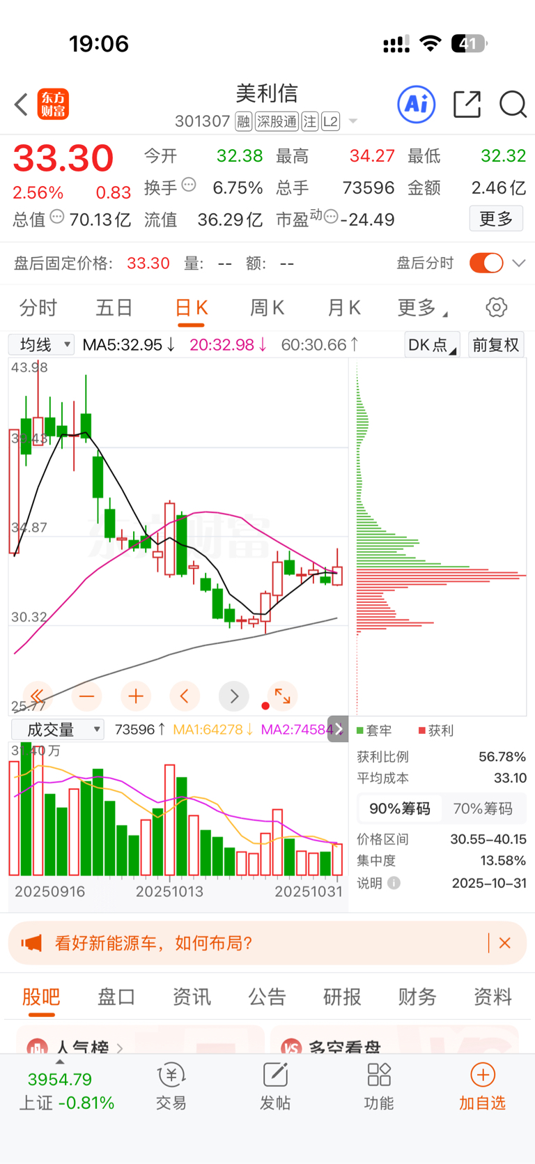 $美利信(SZ301307)$ 获利大于套牢的?主力可以起飞让我也解个套